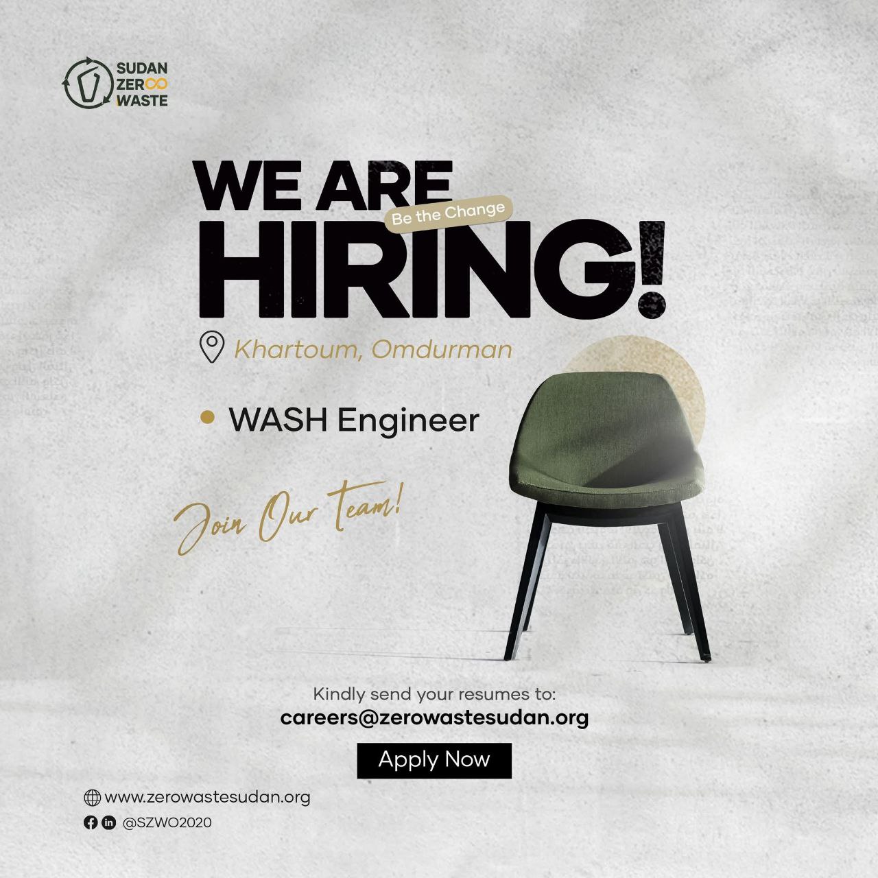 مطلوب مهندس WASH للعمل في الخرطوم مع منظمة سودان زيرو ويست