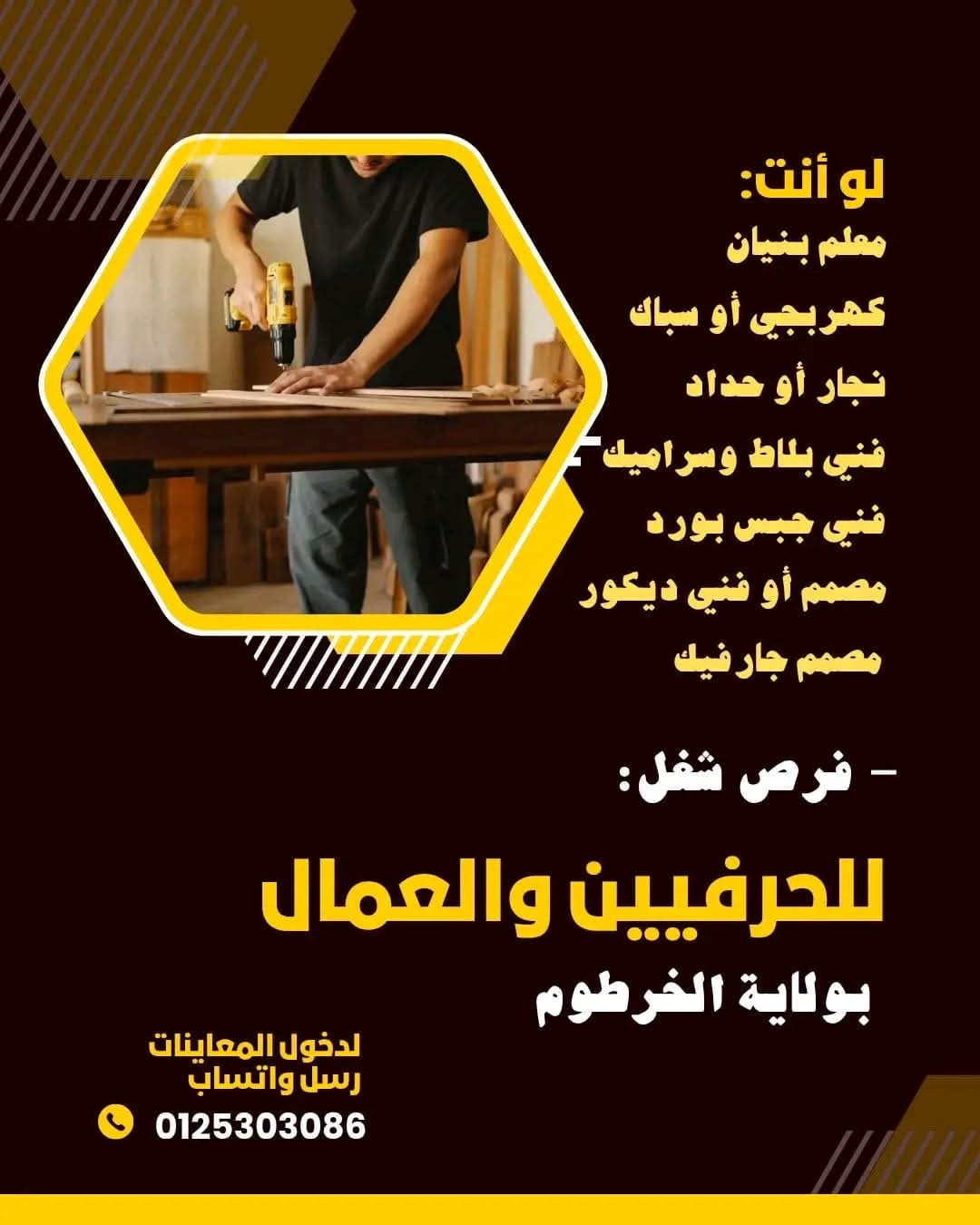 وظائف في مجالات البناء، التشطيب، والديكور للشباب في الخرطوم وبحري وأم درمان