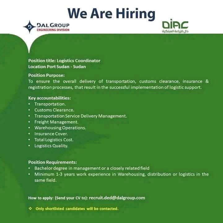 مطلوب منسق لوجستي للعمل في DAL GROUP – بورتسودان