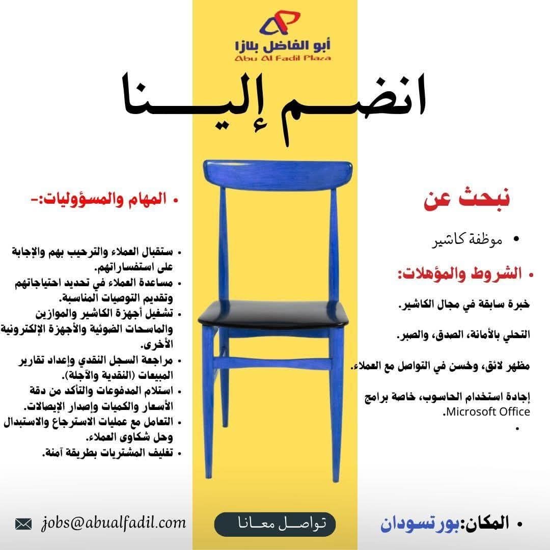 شركة أبو الفاضل بلازا تفتح باب التوظيف لوظيفة كاشير في عطبرة وبورتسودان