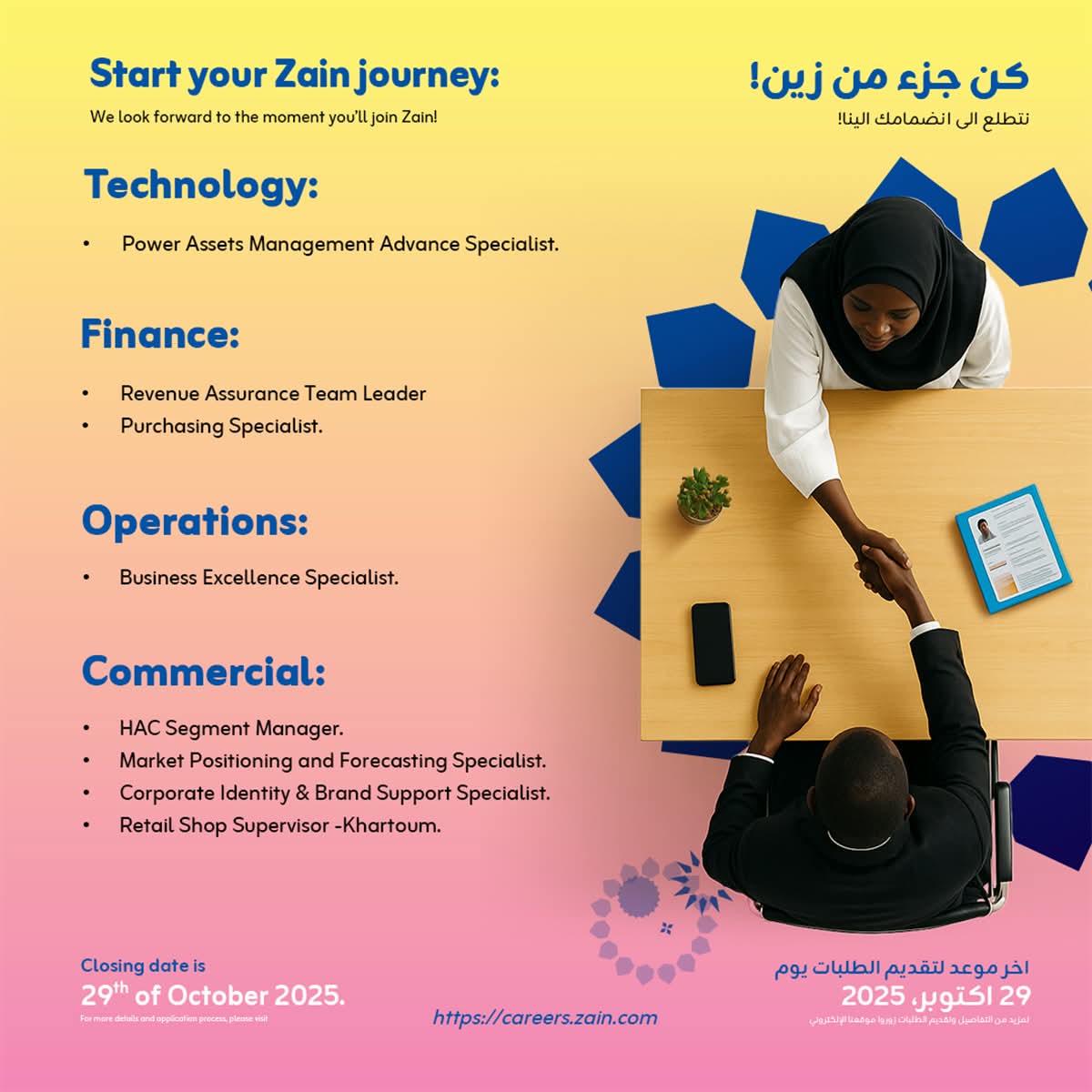 آخر موعد للتقديم هو 29 أكتوبر 2025. للمزيد من التفاصيل وإتمام عملية التقديم، يرجى زيارة: https://careers.zain.com