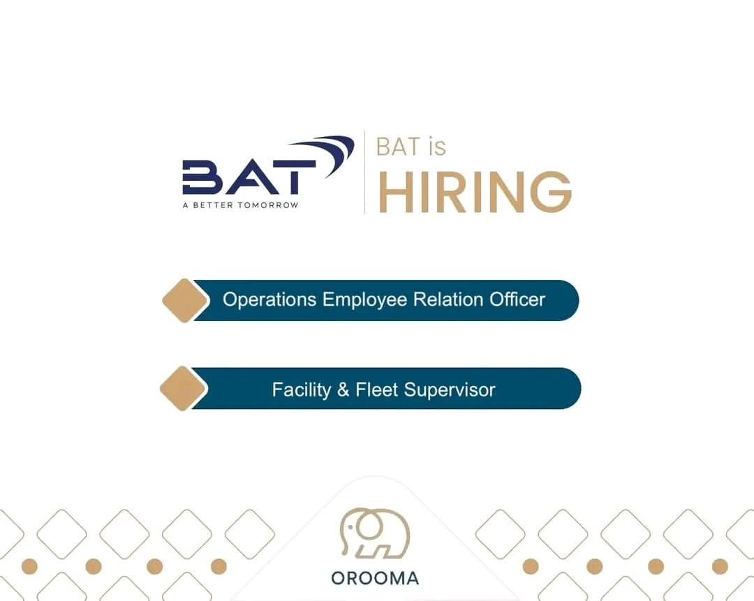 تعلن شركة British American Tobacco (BAT) عن توفر فرص عمل مميزة ضمن فريقها في السودان، وتدعو المهتمين بالانضمام إلى بيئة عمل عالمية تجمع بين المهنية والتطوير المستمر إلى التقديم في الوظائف التالية: