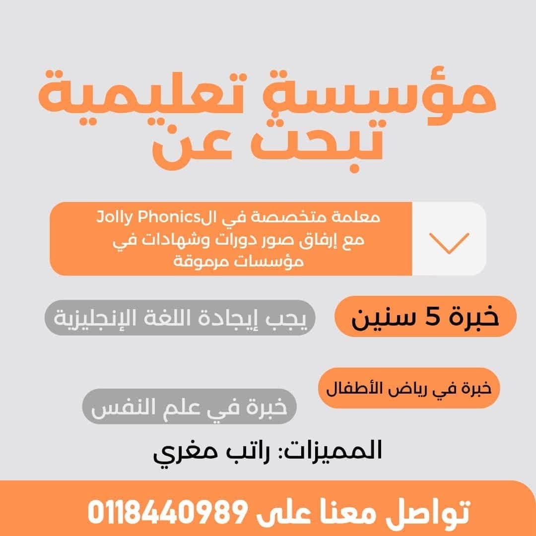فرصة عمل لمعلمة Jolly Phonics في مؤسسة تعليمية مرموقة بأم درمان