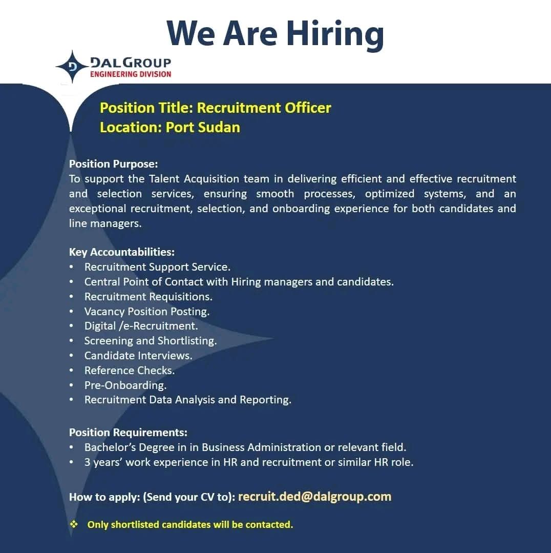 وظيفة ضابط توظيف بمجموعة دال الهندسية في بورتسودان