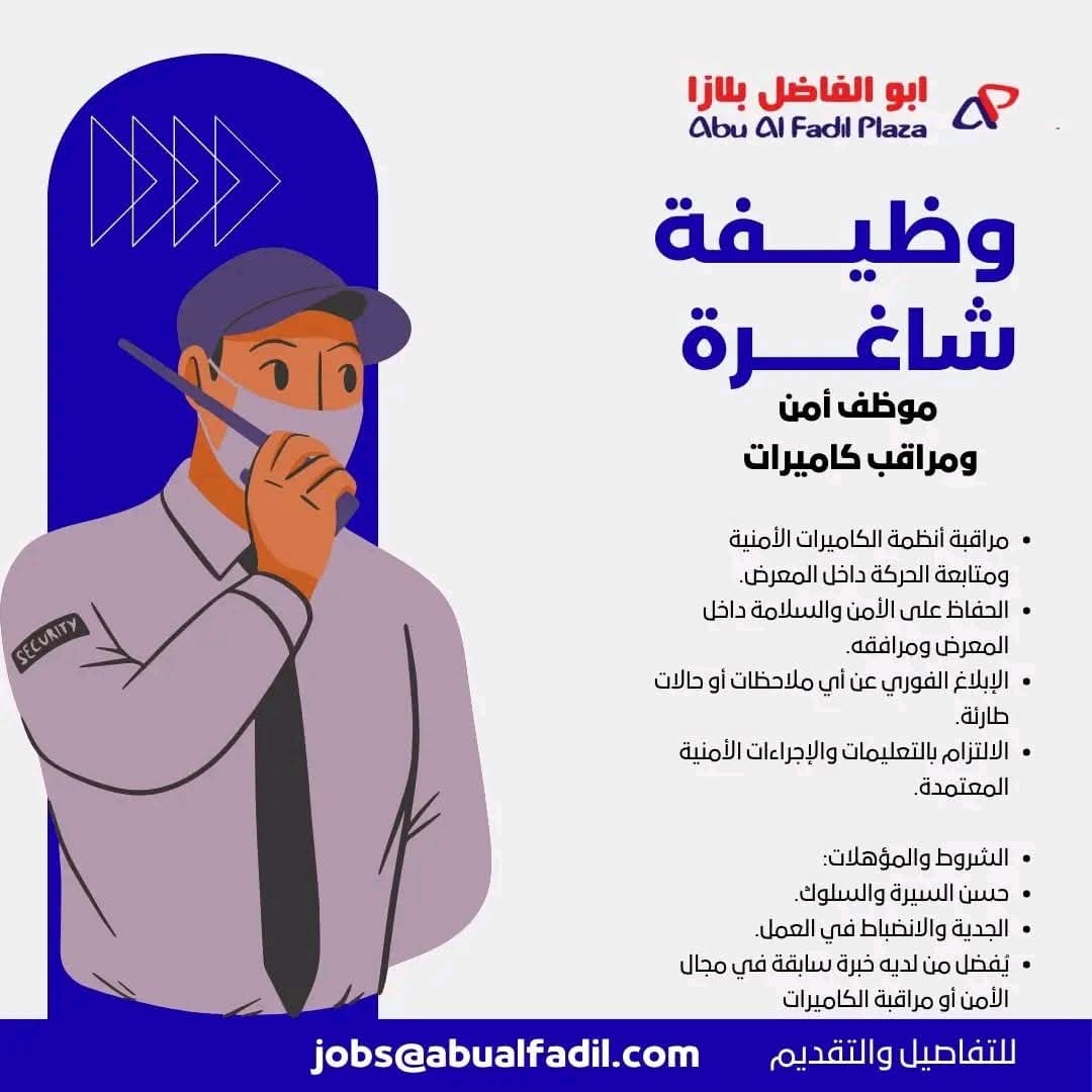 مطلوب موظف أمن ومراقب كاميرات للعمل داخل معارض تجارية وفق شروط ومعايير مهنية