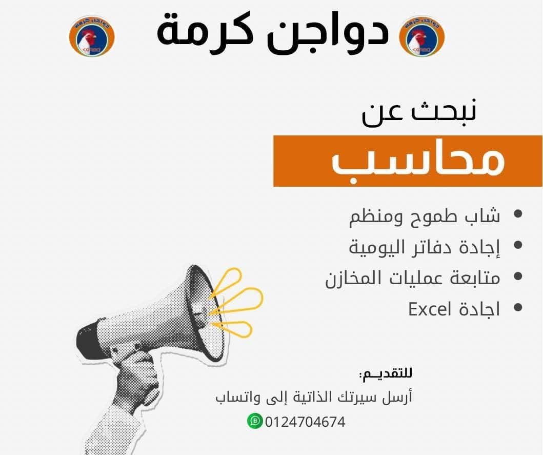 دواجن كرمة تعلن عن فرصة عمل لمحاسب شاب