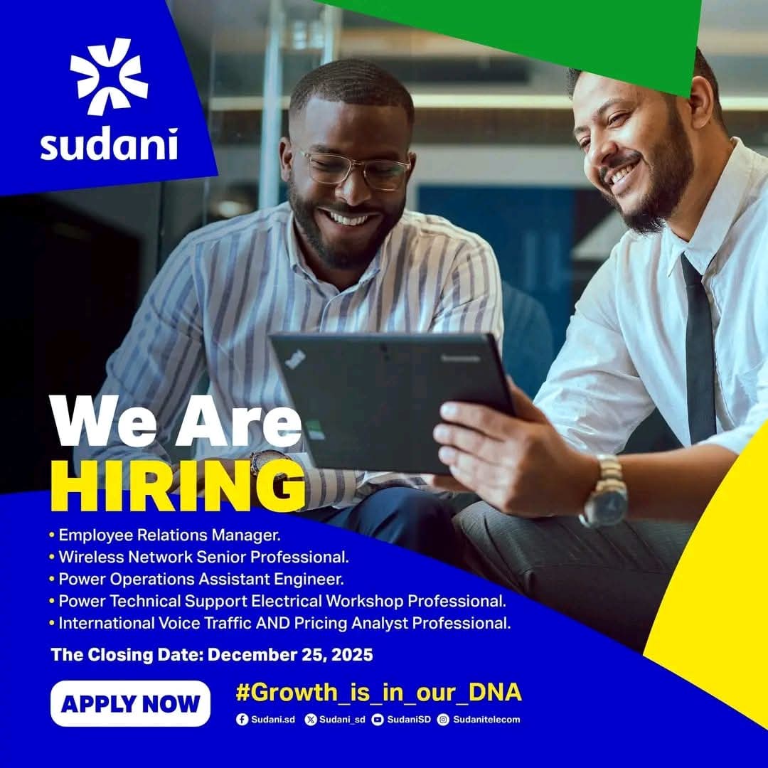 في إطار سعيها المستمر لتعزيز كوادرها ودعم مسيرتها في قطاع الاتصالات، أعلنت شركة سوداني للاتصالات عن فتح باب التوظيف لعدد من الوظائف المتخصصة، مستهدفة استقطاب كفاءات مهنية قادرة على الإسهام في تطوير الأداء المؤسسي ومواكبة متطلبات النمو والتوسع في بيئة عمل ديناميكية تعتمد على الابتكار والاستدامة.