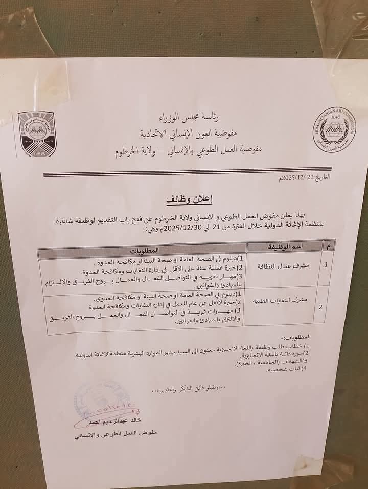 تشترط الوظيفة خبرة عملية في إدارة المشاريع الهندسية، مهارات متقدمة في التخطيط والمتابعة، القدرة على العمل في بيئات متعددة ومتنوعة، وفهم حساسيات الثقافة السودانية في العمل الإنساني. كما يُفضل إلمام بالبرامج المكتبية وأدوات إدارة المشاريع الحديثة.