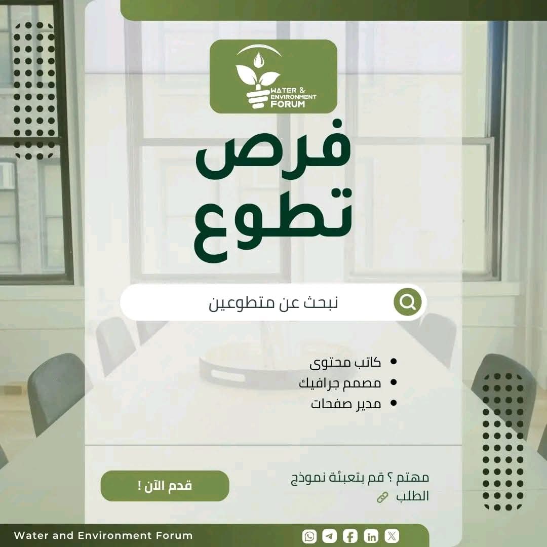 منتدى المياه والبيئة يفتح باب العضوية للانضمام إلى فريقه الإعلامي والإداري