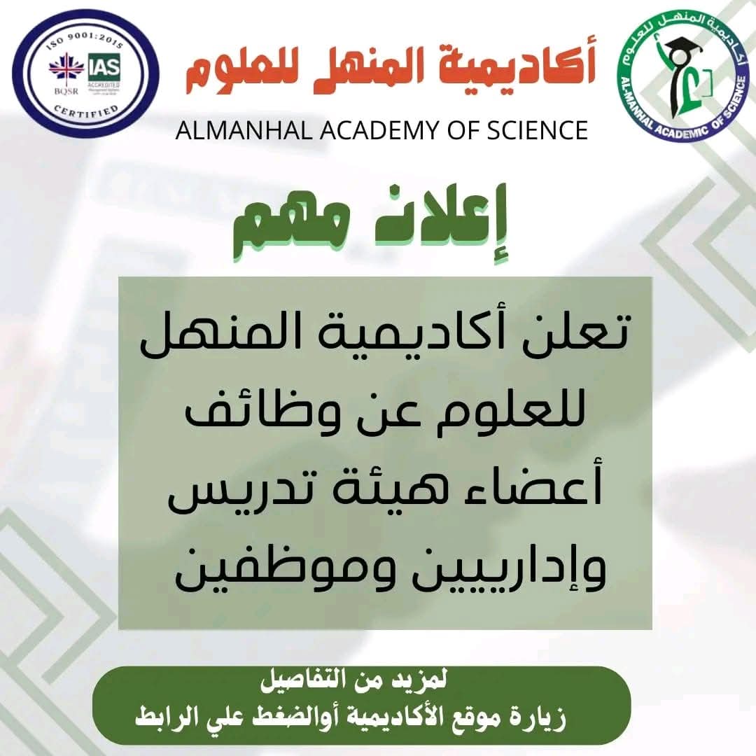 أكاديمية المنهل للعلوم تعلن عن فرص عمل لأعضاء هيئة التدريس والإداريين