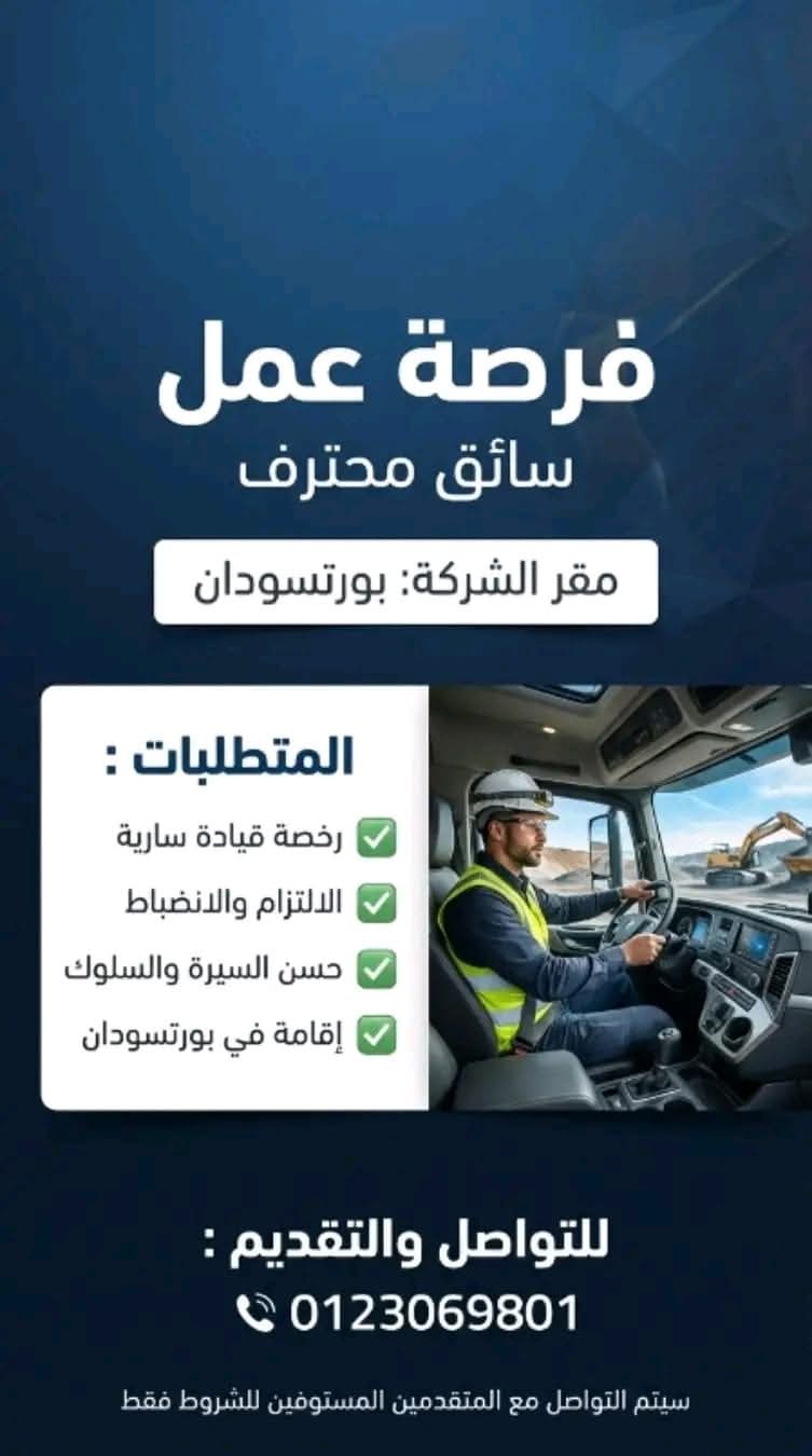 شركة كبرى تعلن عن فرصة عمل لسائق بمدينة بورتسودان