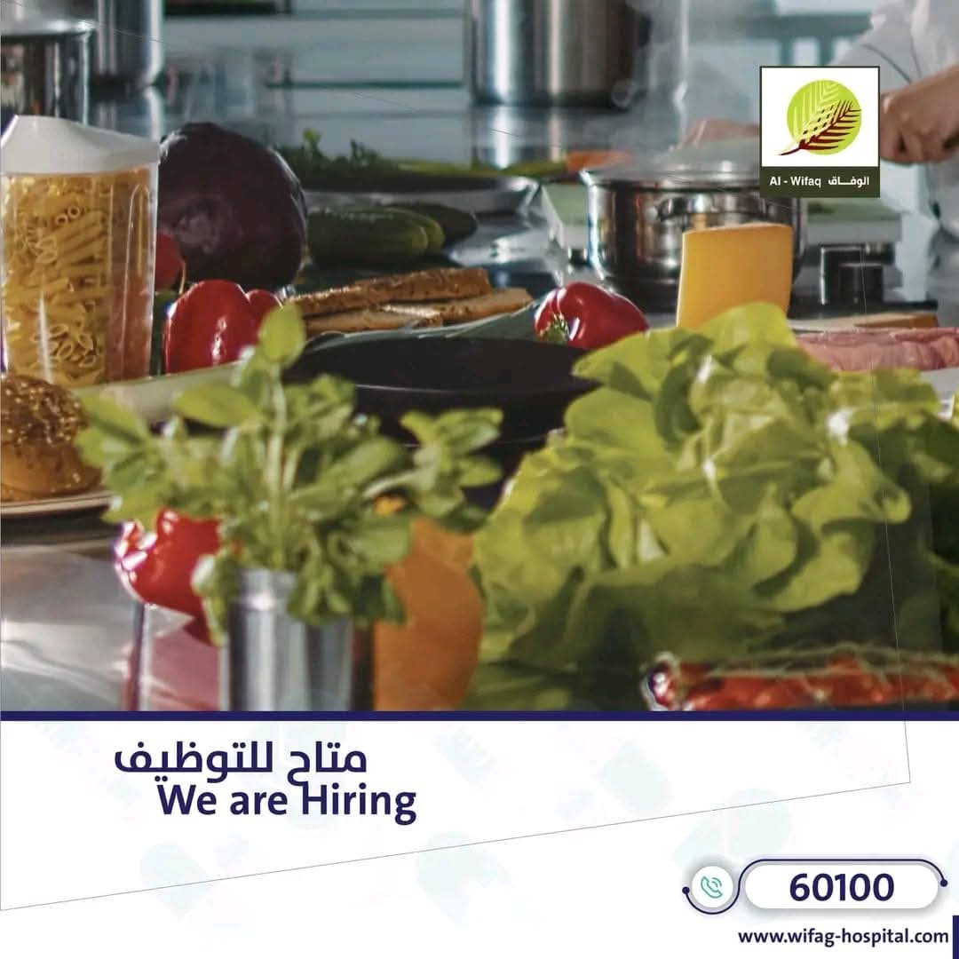لأن التغذية الصحية جزء أساسي من رحلة الشفاء، يعلن مستشفى الوفاق القطري عن حاجته إلى طباخ محترف للانضمام إلى فريقه المتميز، ليكون جزءًا من جهود المستشفى في تقديم رعاية متكاملة للمرضى.