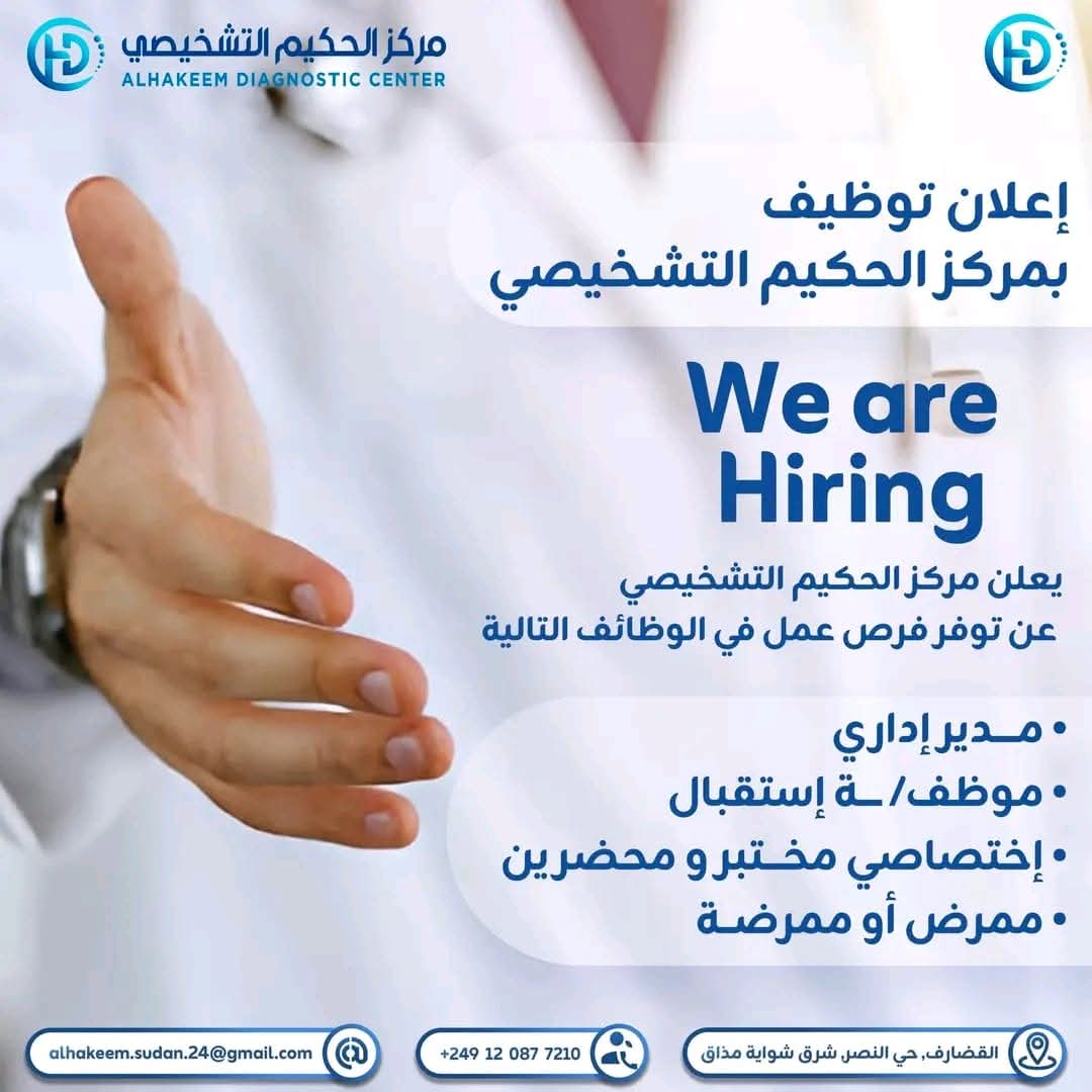 فرص وظيفية بمركز الحكيم التشخيصي بالقضارف