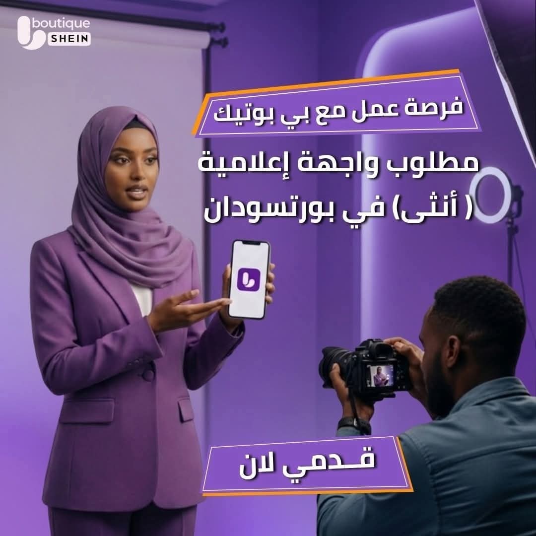 يعلن “بي بوتيك” عن فتح باب التقديم لوظيفة واجهة إعلامية (للإناث) بمدينة بورتسودان، ضمن جهوده لتعزيز حضور العلامة التجارية على منصات التواصل الاجتماعي وتقديم محتوى بصري مبتكر وجذاب لعملائه. تأتي هذه الفرصة للمهتمات بالعمل الإعلامي والإنتاج الرقمي، مع التركيز على التفاعل المباشر مع الجمهور وإظهار العلامة التجارية بأسلوب عصري وتريندي.