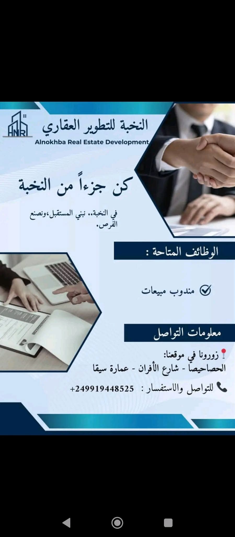 شركة النخبة للتطوير العقاري تفتح باب التقديم لوظائف مندوبات مبيعات