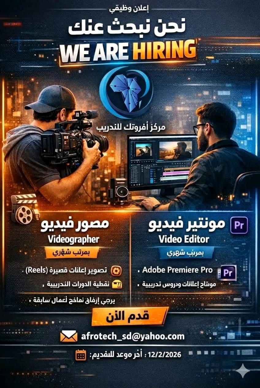 مركز أفروتك للتدريب يعلن وظائف إبداعية في أمدرمان لمصور فيديو وممنتج