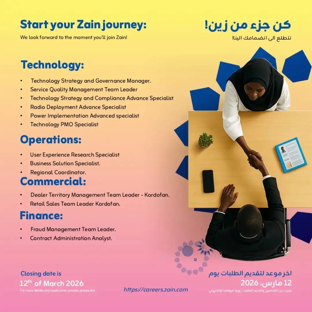 زين السودان تعلن عن فرص توظيف في عدة قطاعات حتى 12 مارس 2026
