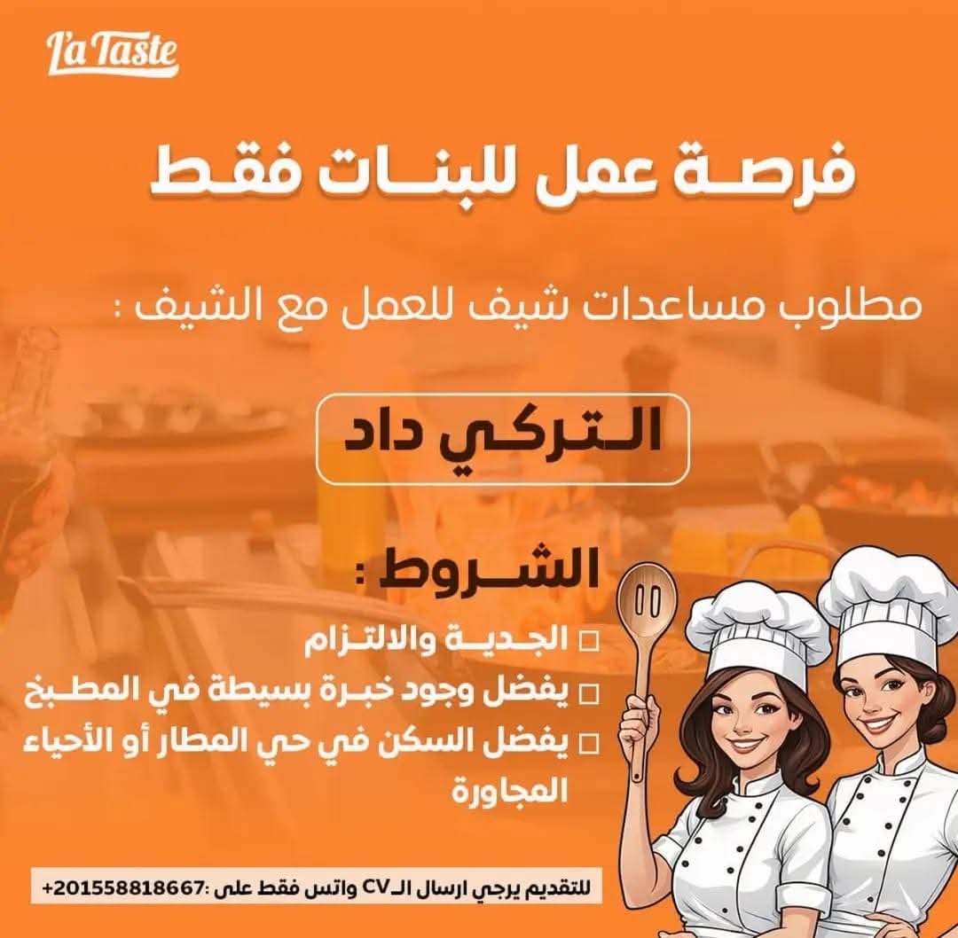 فرصة عمل لمساعدات شيف في مطعم لاتيست