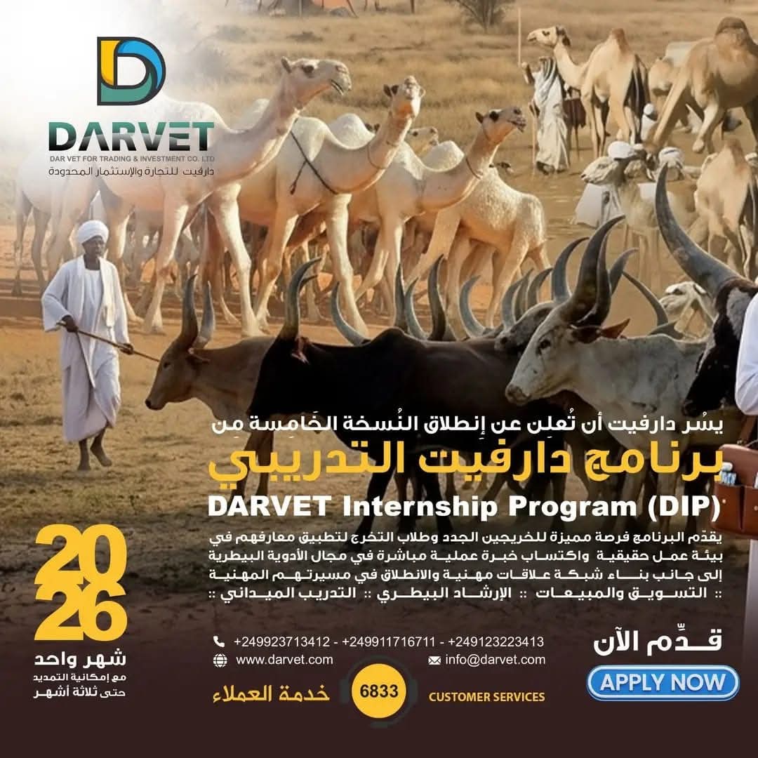 في خطوة تعكس التزامها المستمر بدعم وتأهيل الكوادر الشابة، أعلنت شركة دارفيت عن إطلاق النسخة الخامسة من برنامجها التدريبي (DIP) لعام 2026، مستهدفة الخريجين الجدد وطلاب المستوى الخامس الراغبين في اكتساب خبرة عملية حقيقية في مجال الأدوية البيطرية، أحد القطاعات الحيوية التي تشهد نمواً متزايداً في السودان.