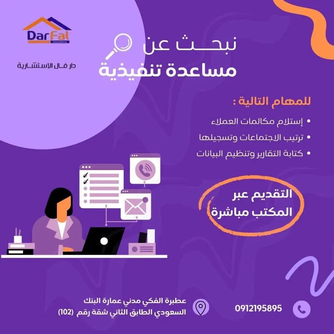 شركة دار فال الاستشارية تعلن عن وظيفة مساعدة تنفيذية بعطبرة