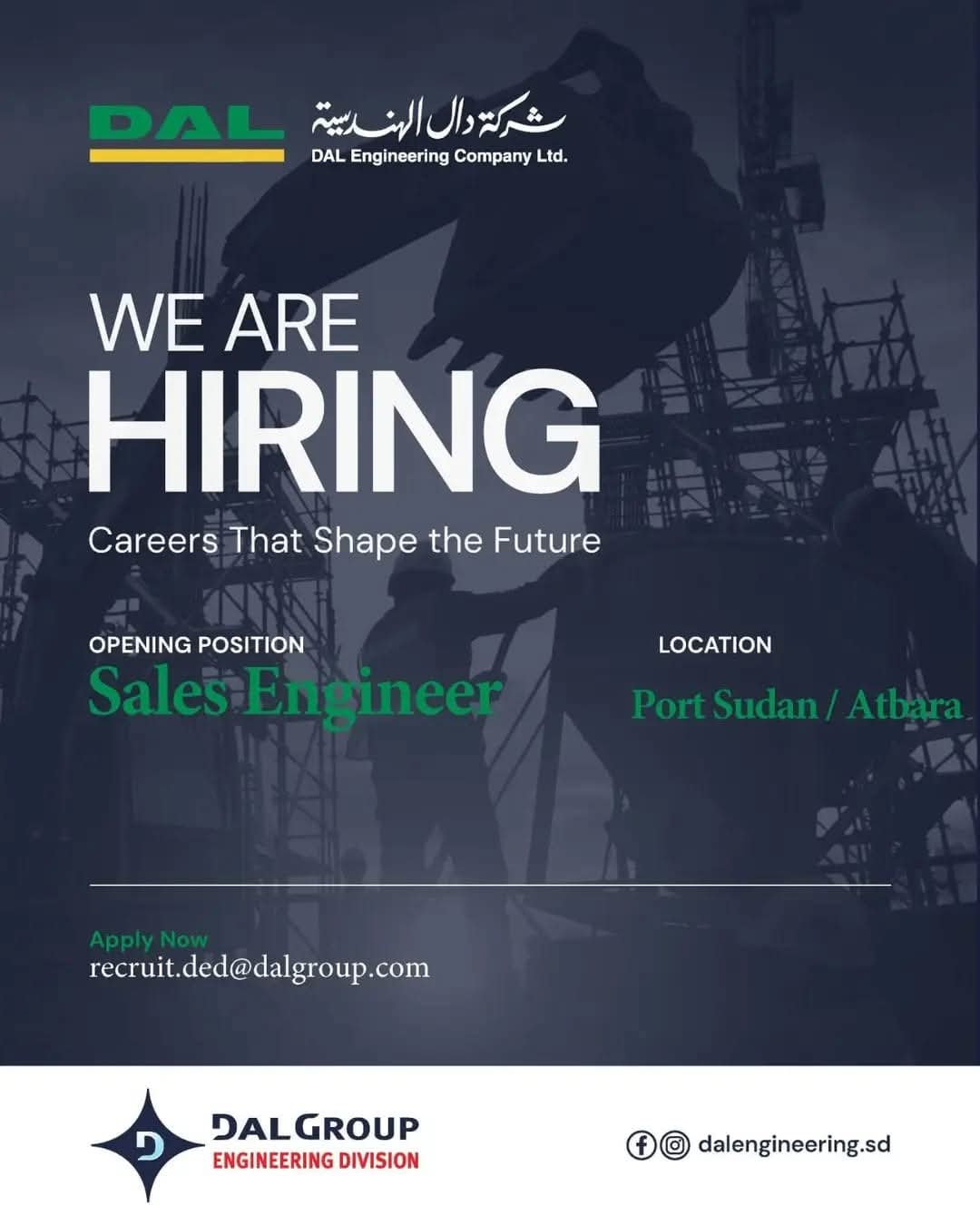 شركة دال الهندسية تعلن عن وظيفة مهندس مبيعات – بورتسودان وعطبرة