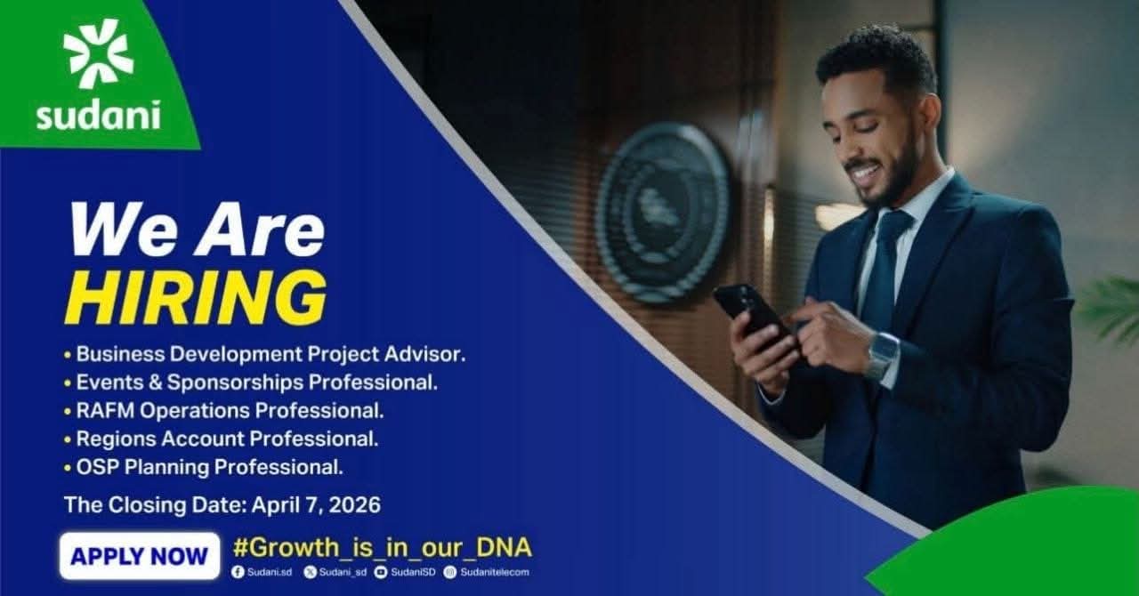 في ظل التنافس المتسارع في قطاع الاتصالات، تواصل شركة سوداني تعزيز مكانتها عبر استقطاب الكفاءات المهنية القادرة على الإسهام في تطوير خدماتها وتوسيع نطاق أعمالها. ويأتي هذا الإعلان عن فرص وظيفية جديدة ليعكس التزام الشركة بتمكين الكوادر الشابة وفتح آفاق مهنية واعدة أمام أصحاب المهارات والخبرات في مجالات متعددة.