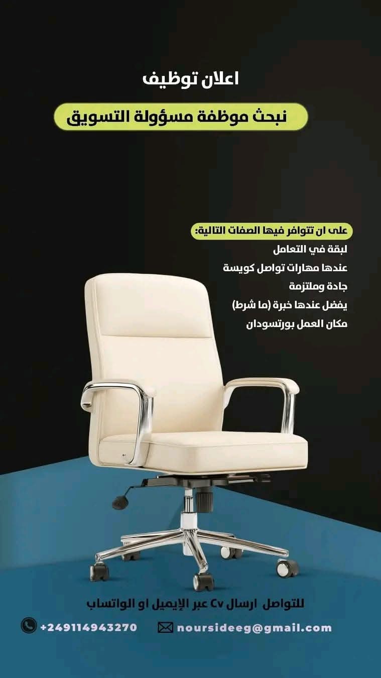 فرصة عمل في بورتسودان: مطلوب موظفة تسويق