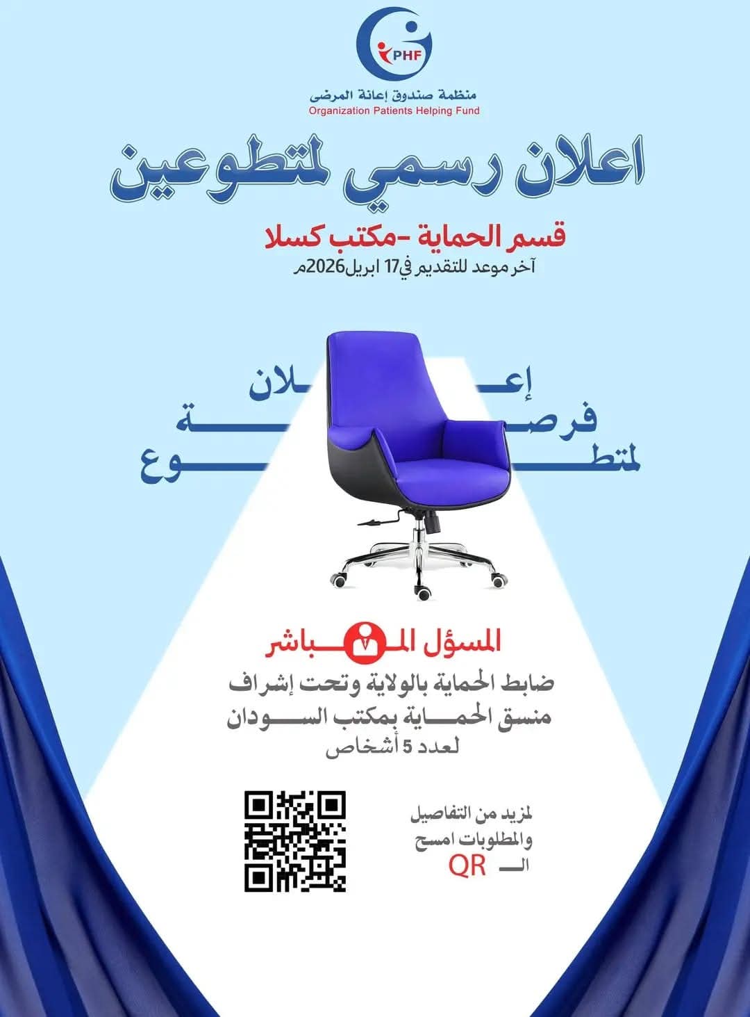 فرصة عمل في منظمة صندوق إعانة المرضى بقسم الحماية في كسلا
