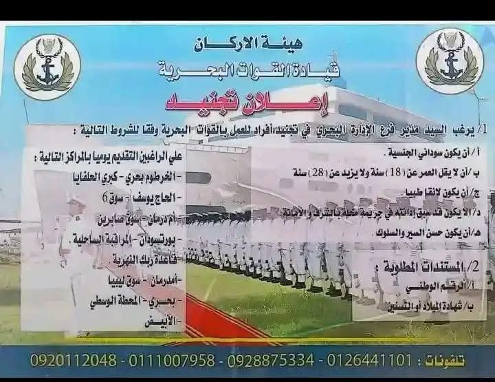 فتح باب التجنيد في القوات البحرية السودانية لعدد من الرتب