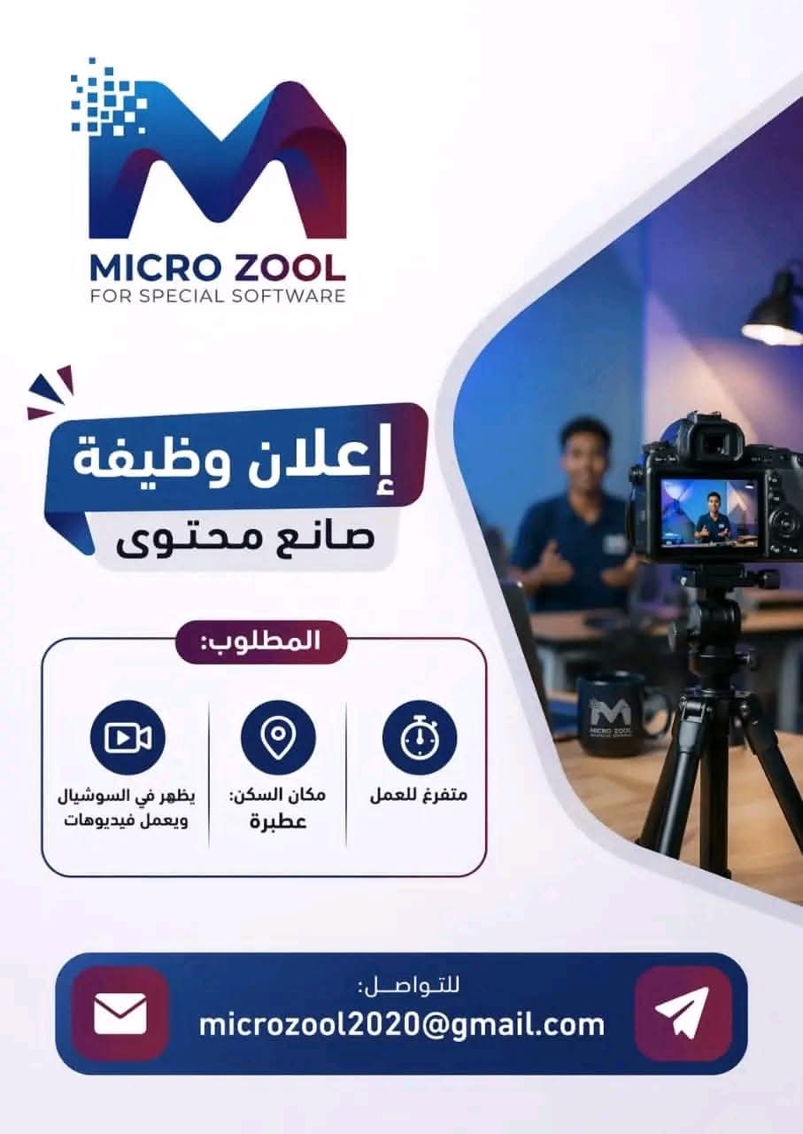 تستهدف هذه الفرصة المقيمين في مدينة عطبرة، حيث تتيح بيئة عمل تساعد على الإبداع وتطوير المهارات في مجال التسويق الرقمي وصناعة المحتوى.