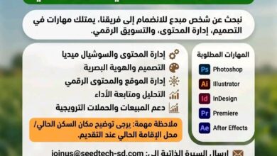 فرصة للمبدعين في التصميم والتصوير والمونتاج للعمل ضمن فريق إعلامي تعليمي متميز