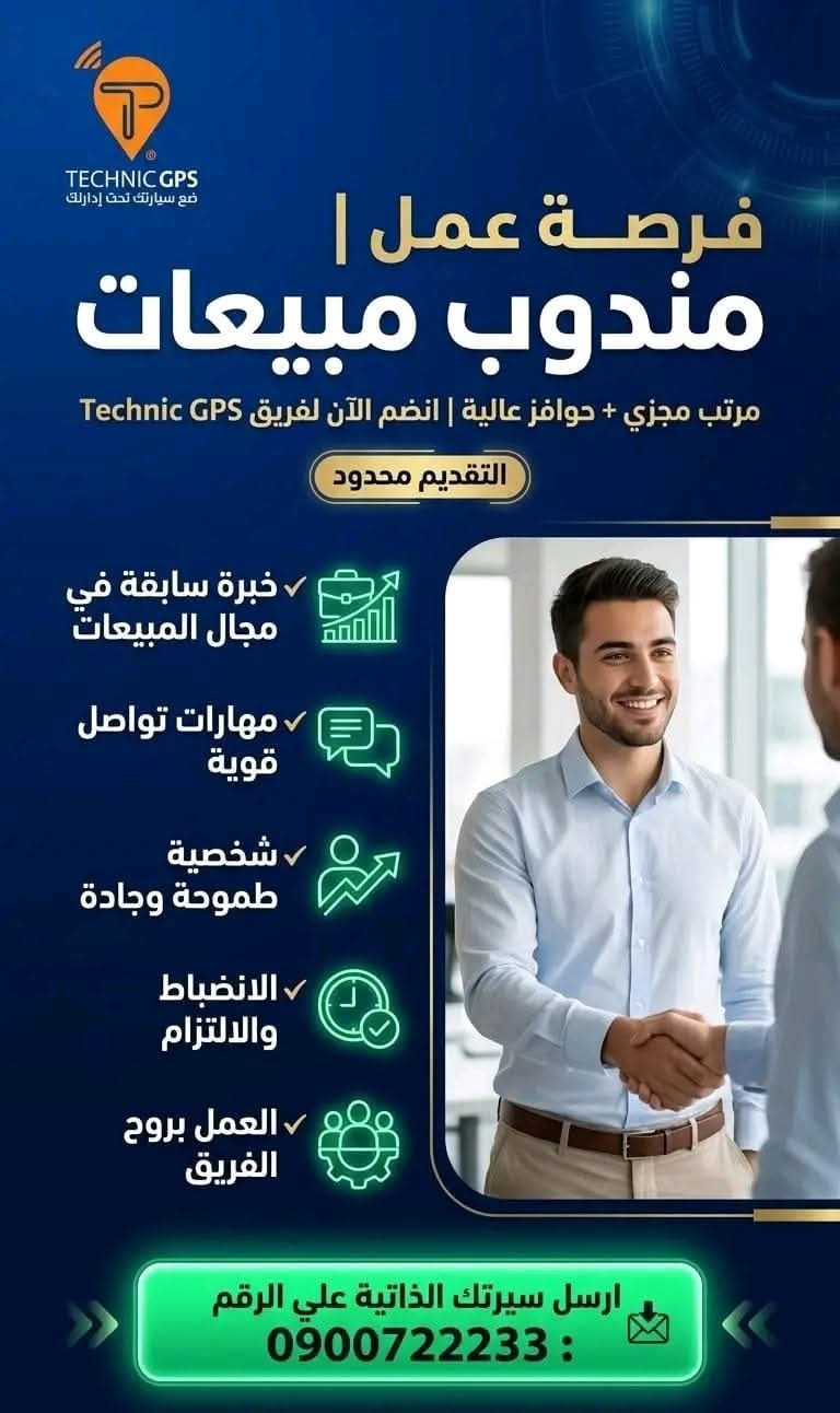 في ظل التوسع المتسارع في سوق الأجهزة التقنية والخدمات الذكية، تبرز أهمية فرق المبيعات في إيصال المنتجات والخدمات إلى العملاء بكفاءة واحترافية. وفي هذا الإطار، أعلنت شركة Technic GPS عن توفر فرصة عمل لوظيفة مندوب مبيعات للعمل بمدينة ود مدني، ضمن جهودها لتعزيز حضورها في السوق وتقديم خدماتها لشريحة أوسع من العملاء.