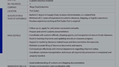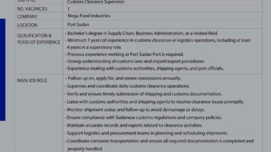 فرصة قيادية في بورتسودان: وظيفة مشرف تخليص جمركي بشركة ميجا فود إندستريز (بيبسي)