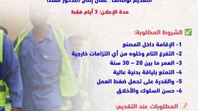 نهر النيل _ أخرى _ الخاص ، أعلن مصنع بيكو لمنتجات اللحوم عن فتح باب التقديم لوظائف عمال إنتاج في…