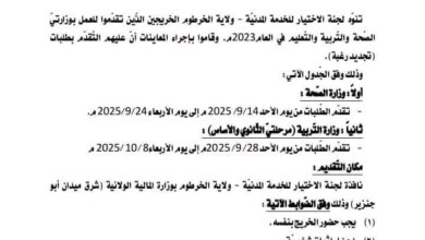 لجنة الاختيار بولاية الخرطوم تدعو المتقدمين السابقين إلى تجديد الرغبات للعمل بوزارتي الصحة والتربية
