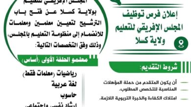 أعلن المجلس الإفريقي للتعليم في ولاية كسلا عن فتح باب الترشيح لتعيين معلمين ومعلمات للانضمام إلى منظومة التعليم بالمجلس، في…