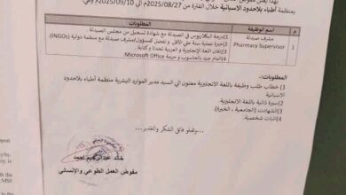 الخرطوم _ الطبي _ منظمات ، أعلنت مفوضية العمل الطوعي والإنساني بولاية الخرطوم عن فتح باب التقديم لوظيفة إشرافية في…