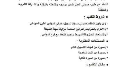 سنار _ النيل الأزرق _ الشمالية _ الجزيرة _ الهندسي _ الخاص ، تدعو شركة سوداني الراغبين في الانضمام لفريقها…