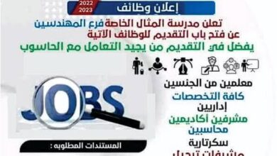 مدرسة المثال بالمهندسين تعلن عن وظائف شاغرة في مختلف التخصصات