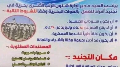 البحر الأحمر _ أخرى _ الحكومي ، في خطوة جديدة لتدعيم صفوفها، أعلنت القوات البحرية السودانية عن فتح باب التقديم…