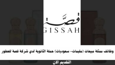وظائف شاغرة بمسمى “ممثلة مبيعات” (مقيمات- سعوديات) لحملة الثانوية فأعلى لدي شركة قصة للعطور بفروعها بمختلف مناطق المملكة