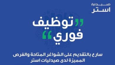 وظائف شاغرة في مجالي المبيعات والمحاسبة لدى صيدليات استر في مدينة الرياض