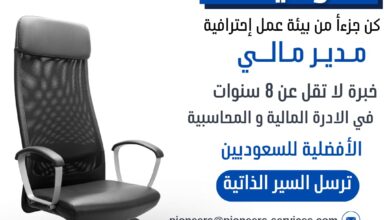 فرصة قيادية في الرياض: مدير مالي لمشروع طموح ضمن شركة بيونيرز