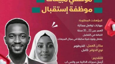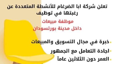 فرصة عمل بشركة أبا الضِرغام – مطلوب موظفة مبيعات في بورتسودان