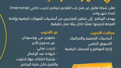 تعلن شركة هانيل عن فتح باب التقديم لبرنامج تدريب داخلي (Internship) في المهارات الرقمية، وهي…