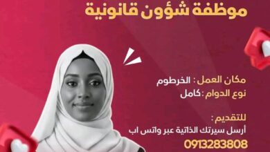 تعلن أعمال الرشيد عبداللطيف عن حاجتها لتعيين موظفين في مدينة عطبرة، ضمن جهودها لتعزيز كفاءة…
