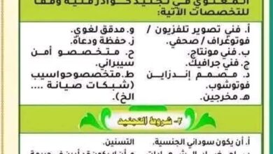 تعلن لجنة الاختيار للخدمة العامة بولاية النيل الأبيض عن بدء التقديم لوظائف معلمين بوزارة التربية…
