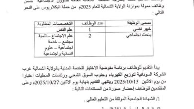 أعلنت مفوضية الاختيار للخدمة المدنية بالولاية الشمالية عن فتح باب التقديم لوظائف مدعومة بميزانية الولاية…