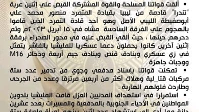 _ ضبط مركبات وأسلحة قادمة من ليبيا :- أعلنت القوات المسلحة السودانية والقوة المشتركة، في…